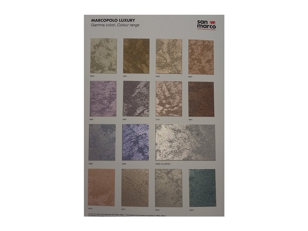 MARCOPOLO LUXURY vďaka veľmi jednoduchej aplikácii poskytuje mnohé dekoratívne efekty a hry svetla a odlesky, ktoré dokážu vyhovieť každej estetickej požiadavke.