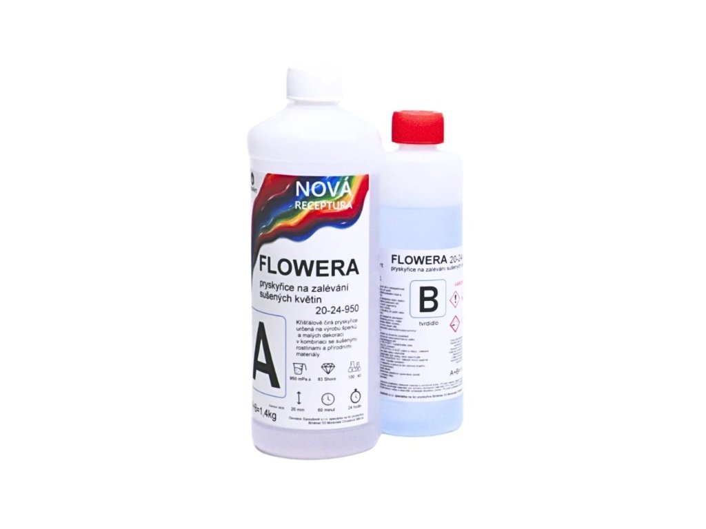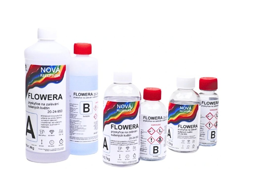Krištáľová živica FLOWERA 45-36-800 UV++ je riedka epoxidová živica určená na sušené kvety a chrobáky