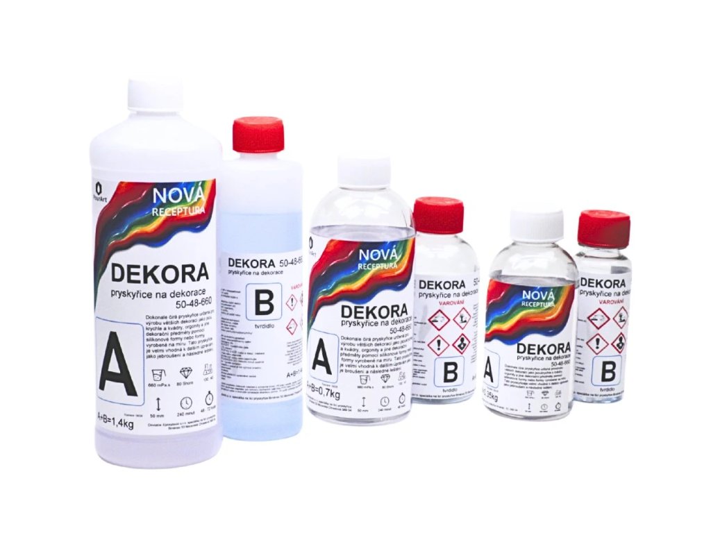 DEKORA je číra epoxidová živica určená na výrobu väčších dekorácií – ako sú kocky, kvádre, orgonity a iné dekoračné predmety pomocou silikónovej formy alebo formy vyrobenej na mieru. Je ideálny na zalievanie do silikónových foriem alebo na samostatné brúsenie a leštenie, napríklad v spojení s drevom.