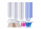 Práca s epoxidovou živicou vyžaduje pre dosiahnutie kvalitných výsledkov množstvo rôznych pomôcok. Pre miešanie epoxidovej živice možno použiť silikónové odmerky alebo jednorázové plastové nádobky. Tvorenie z liacej epoxidovej živice pôjde jednoduchšie s rôznymi špachtličkami a stierkami na epoxidovú živicu, liatie živice možné usmerniť vhodnou lepiacou páskou a bublinky v epoxidovej živici možno eliminovať plynovým horákom. Ako miešať epoxidovú živicu? Veľmi dôležitou pomôckou pri odlievaní živice je digitálna váha. Miešací pomer epoxidovej živice PourArt je uvádzaný vo váhovom - hmotnostnom pomere napríklad 100:23 predstavuje 100g živice a 23g tvrdidla. Stanovenie pomeru živice a tvrdidla v objemových jednotkách (ml) neodporúčame. Vyžaduje presné laboratórne pomôcky, ktoré sú drahé a pomerne zložité je ich očistiť od živice.